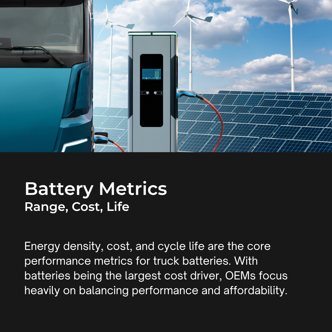 公路運輸卡車是全球二氧化碳排放的主要來源之一,使其脫碳化成為迫切課題。重型車隊需要具備高能量密度(> 210 Wh/kg)、長循環壽命(3,000–6,000 次充放電)且具成本效益的電池系統,以維持載重能力與運行時間。